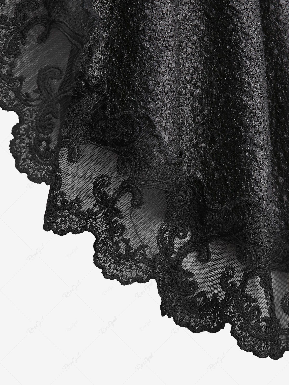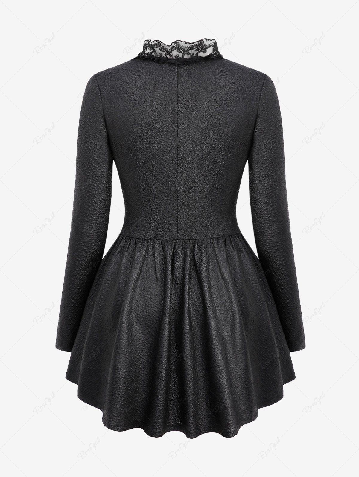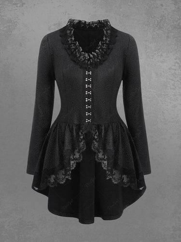 💗Lauren Loves💗 Gothic Plus Size Crack Textured Floral Lace Trim Hook and Eye Ruffles Asymmetric High Low Long Sleeves Coat