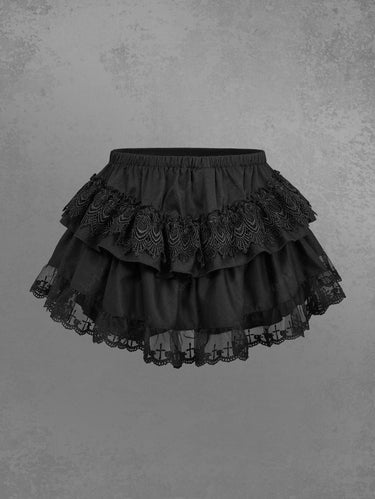 Gothic Cross Lace Patchwork Layered Skirted Sexy Shorts