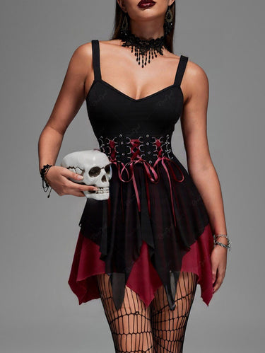 Gothic D-Ring Lace Up Backless Layered A Line Tank Dress