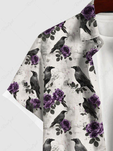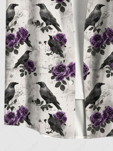 Gothic Plus Size Distressed Rose Flower Eagle Print Button Pocket Shirt For Men