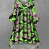 Gothic Plus Size Flare Sleeves Bat Spider Web Floral Leaves Printed Ruched High Low Halloween Costume Asymmetric A Line Dress