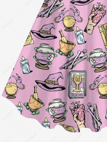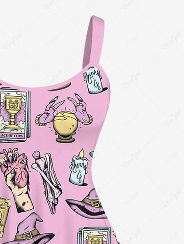 Gothic Plus Size Hand Heart Hat Crystal Ball Tarot Candle Bone Moon Star Print A Line Backless Tank Dress