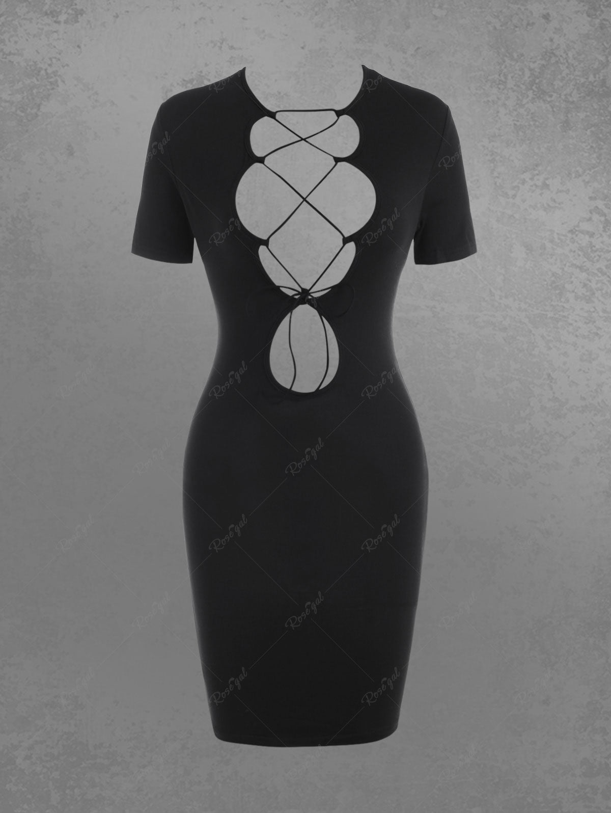 Whipped up in a stretchy knitted fabric, this body-hugging mini dress is devoid of detail, bar the lace-up straps. Team yours with heeled mules and a minitour clutch, as shown.