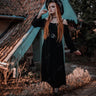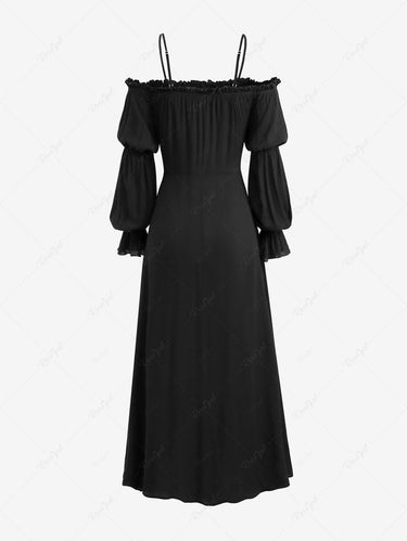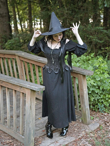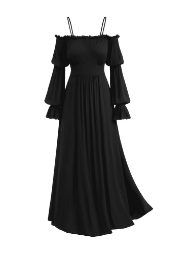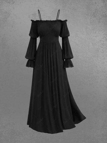 💗DVORAH Loves💗 Gothic Plus Size Halloween Witch Costume Gothic Lantern Sleeves Off The Shoulder Ruched Solid A Line Midi Dress