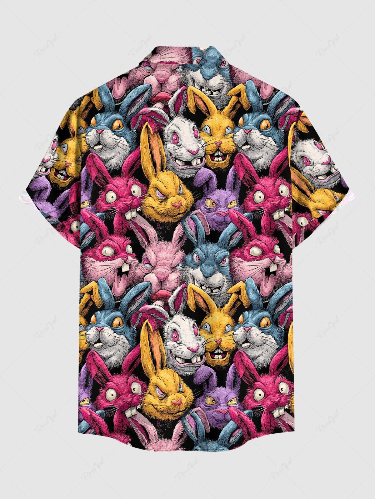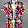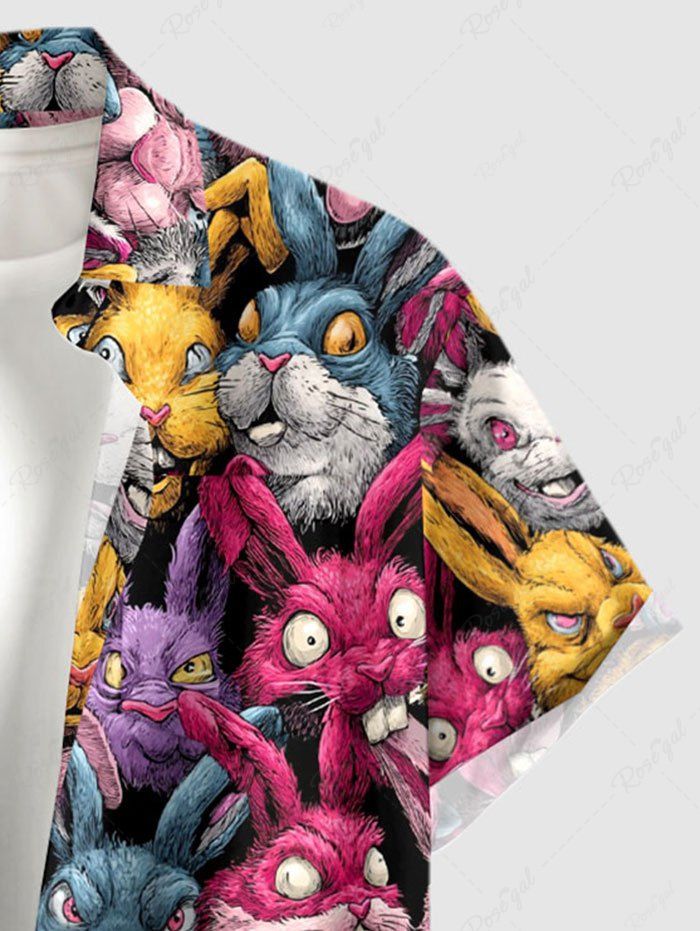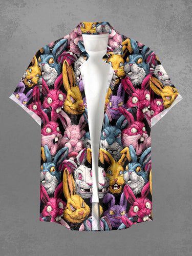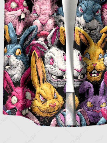 Gothic Plus Size Colorful Rabbit Print Easter Button Pocket Shirt For Men
