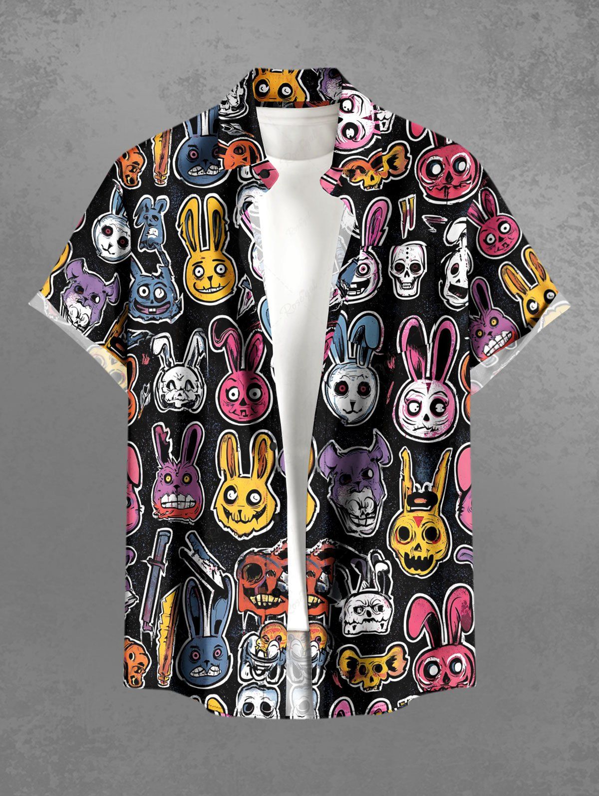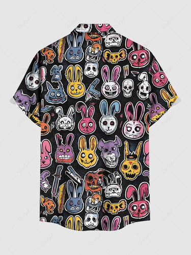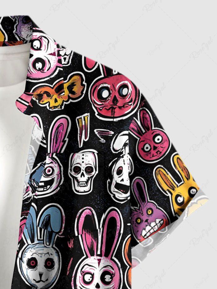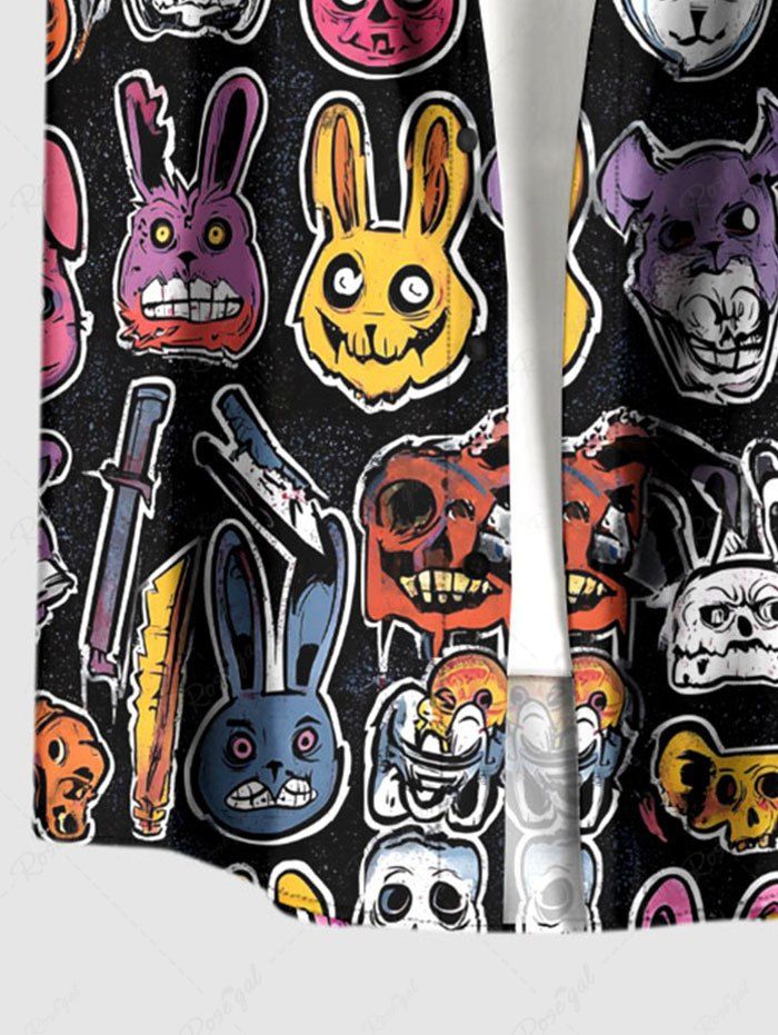Gothic Plus Size Colorful Skull Rabbit Print Easter Button Pocket Shirt For Men