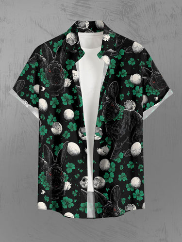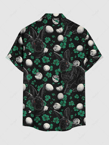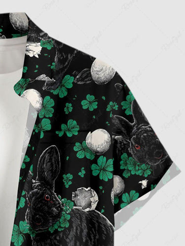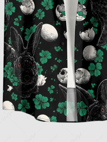 Gothic Plus Size Easter Egg Rabbit Leaf Print Buttons Pocket Shirt For Men