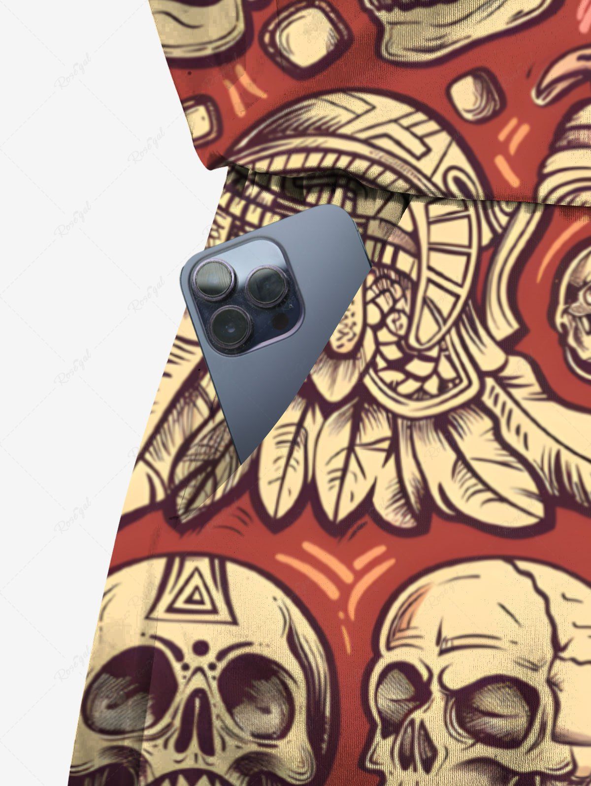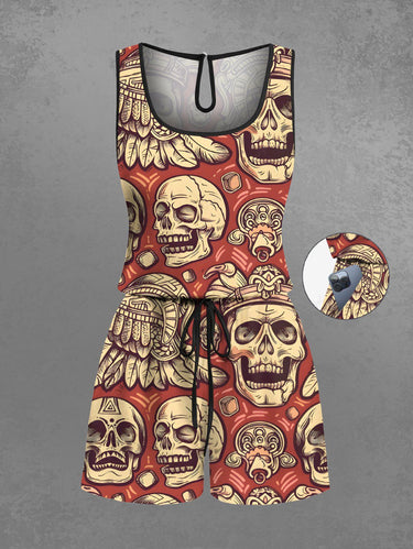 Gothic Plus Size Ethnic Skull Print Drawstring Pocket Romper