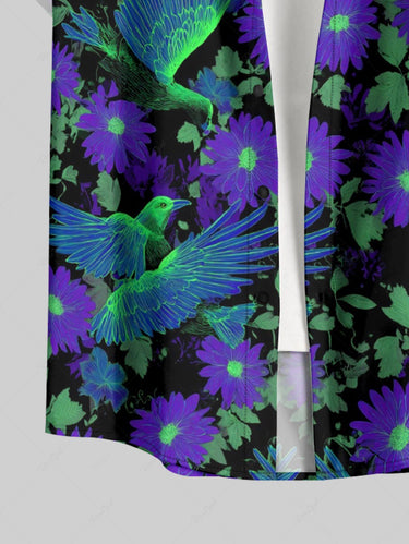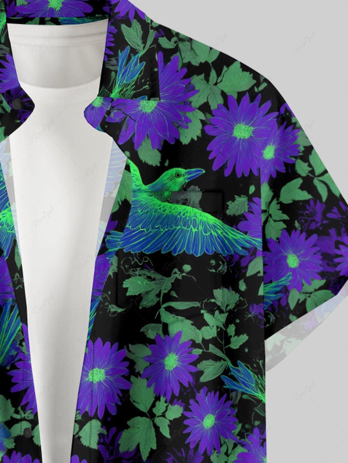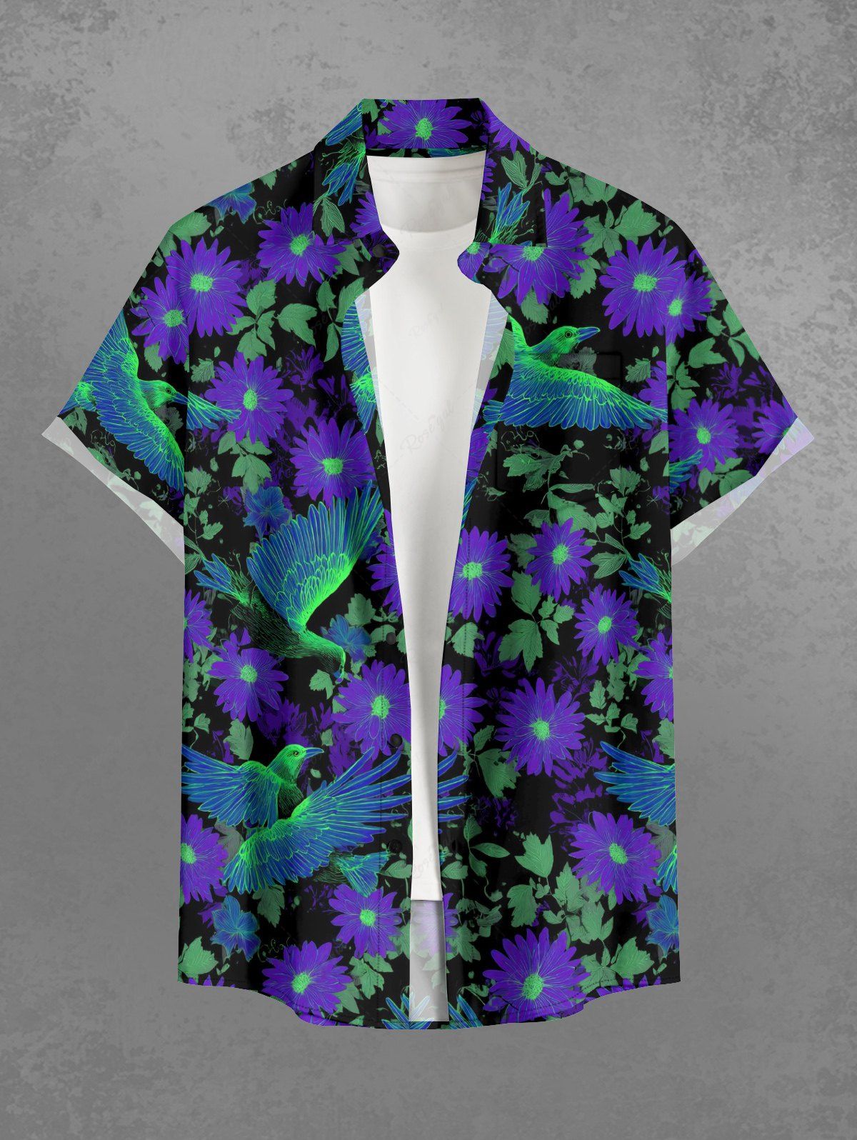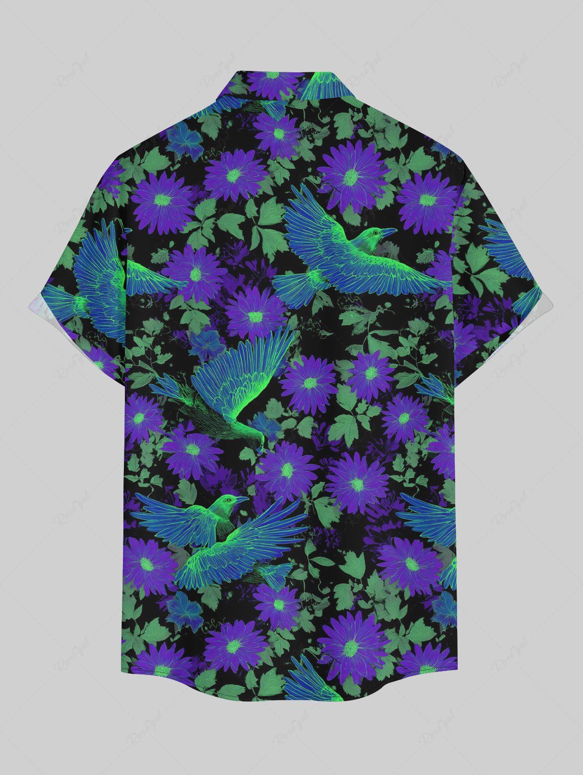 Gothic Plus Size Flower Leaf Bird Print Button Pocket Shirt For Men