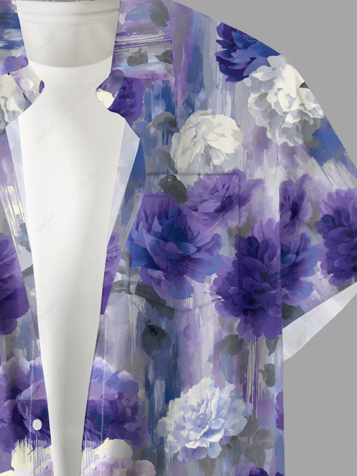 Gothic Plus Size Flower Print Button Pocket Shirt For Men