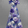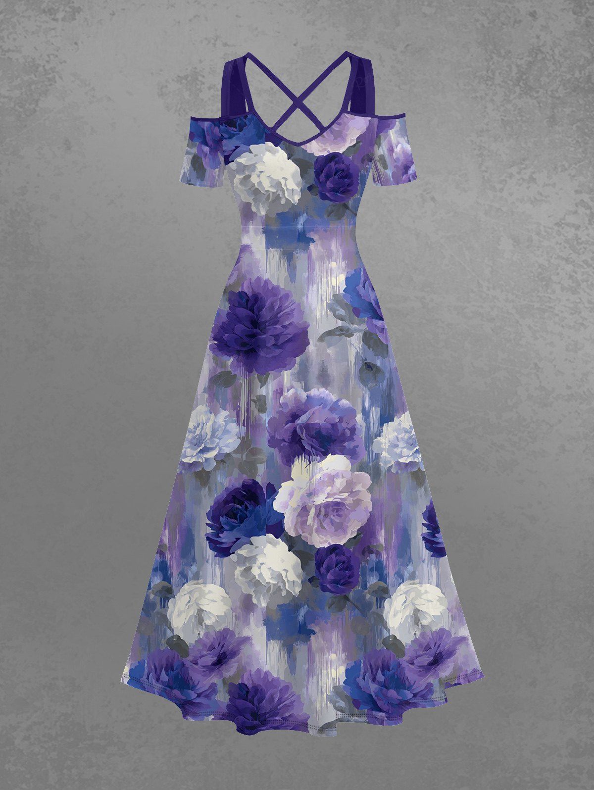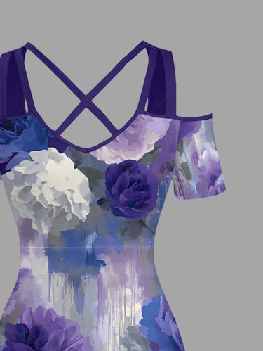 Gothic Plus Size Flower Print Cold Shoulder Crisscross Strappy A Line Dress