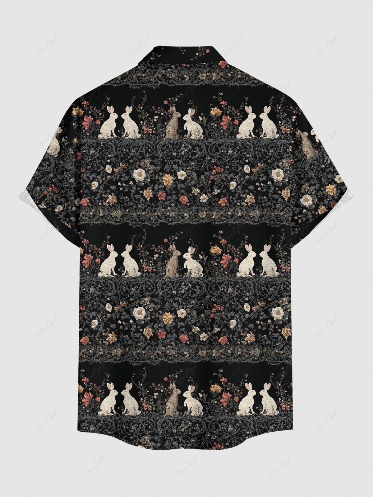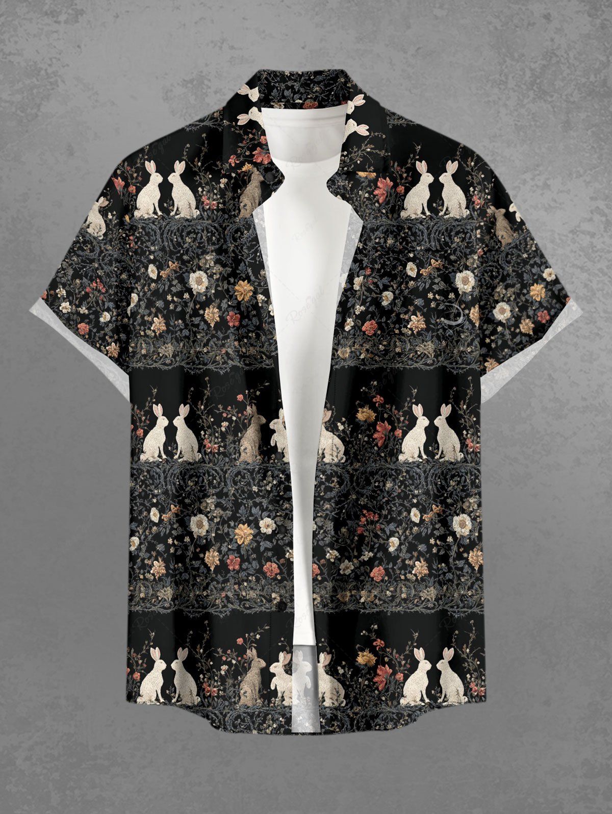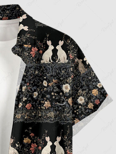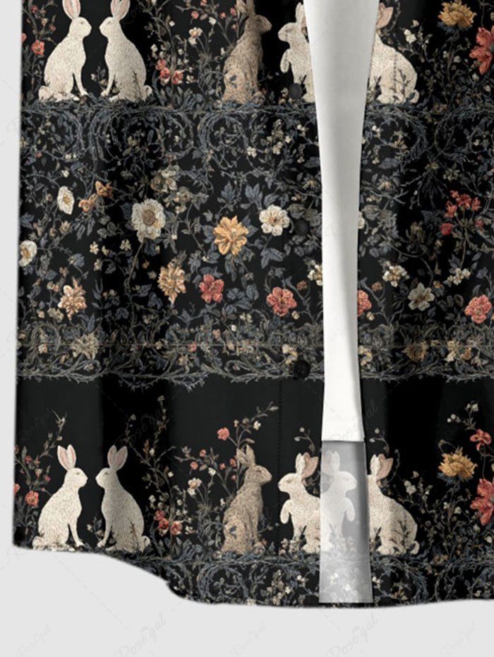 Gothic Plus Size Rabbit Flower Print Easter Button Pocket Shirt For Men