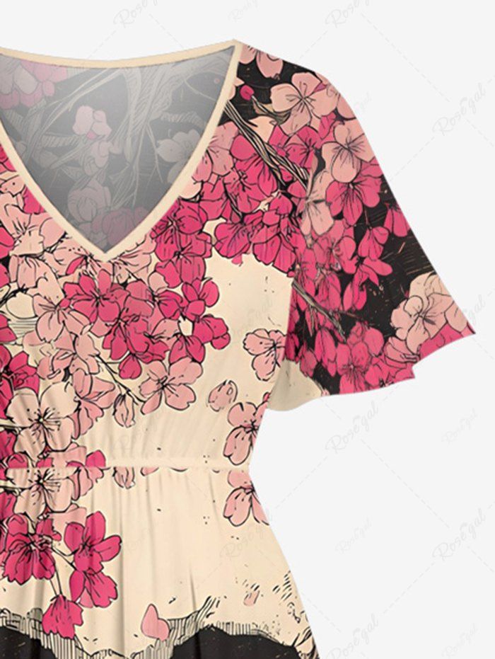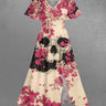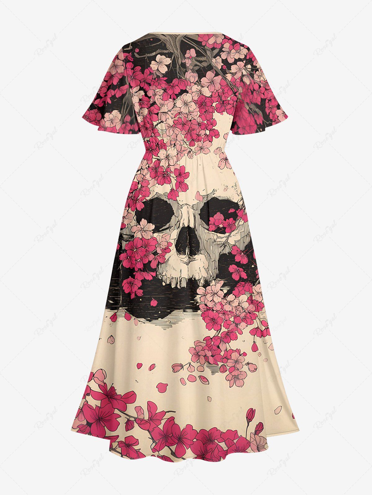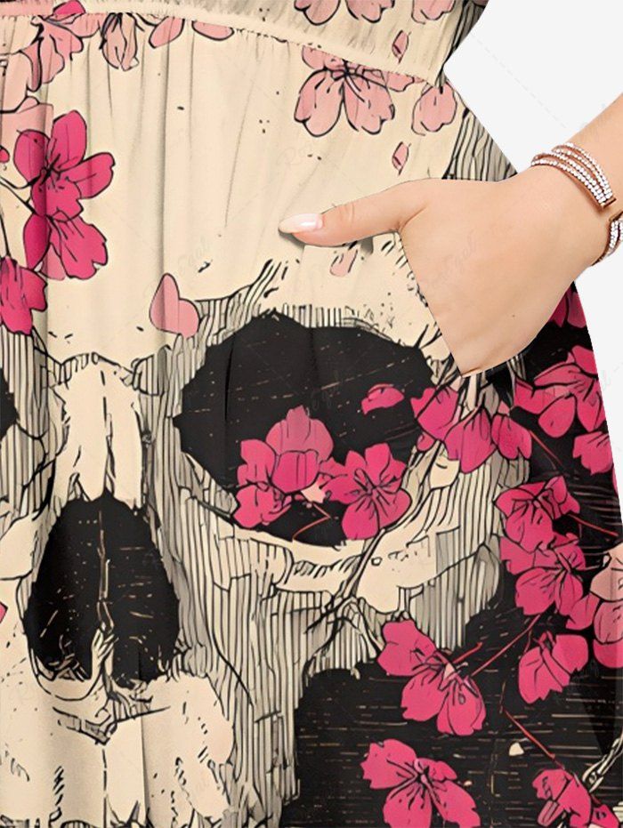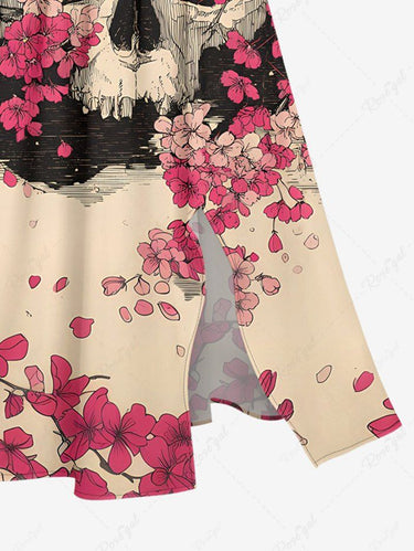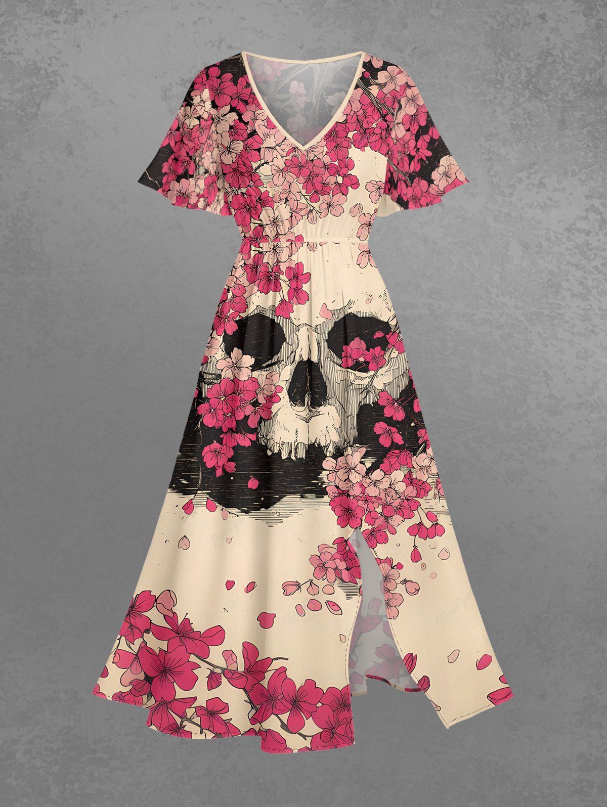 Gothic Plus Size Skull Flowers Print Split Midi Dress