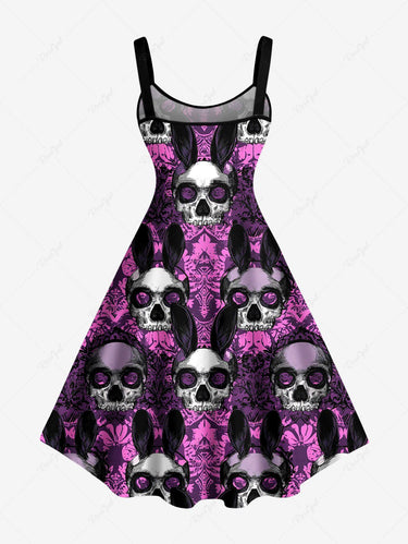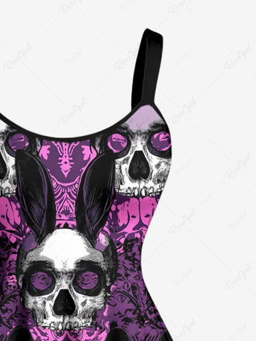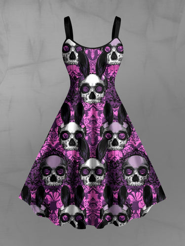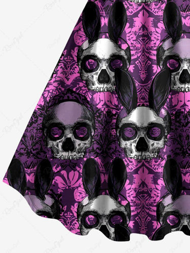 Gothic Plus Size Skull Rabbit Print Easter A Line Dress