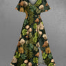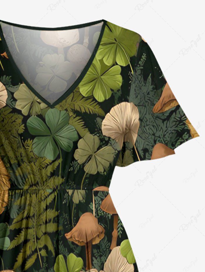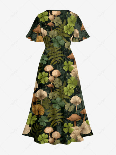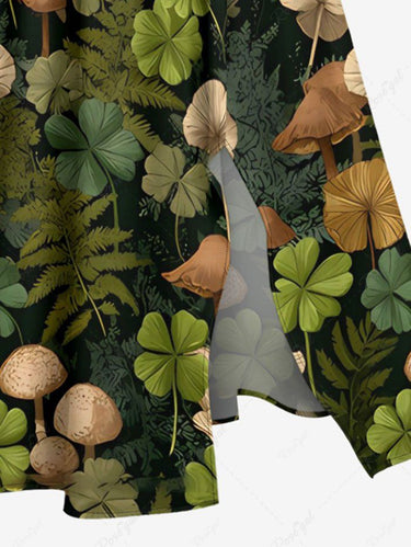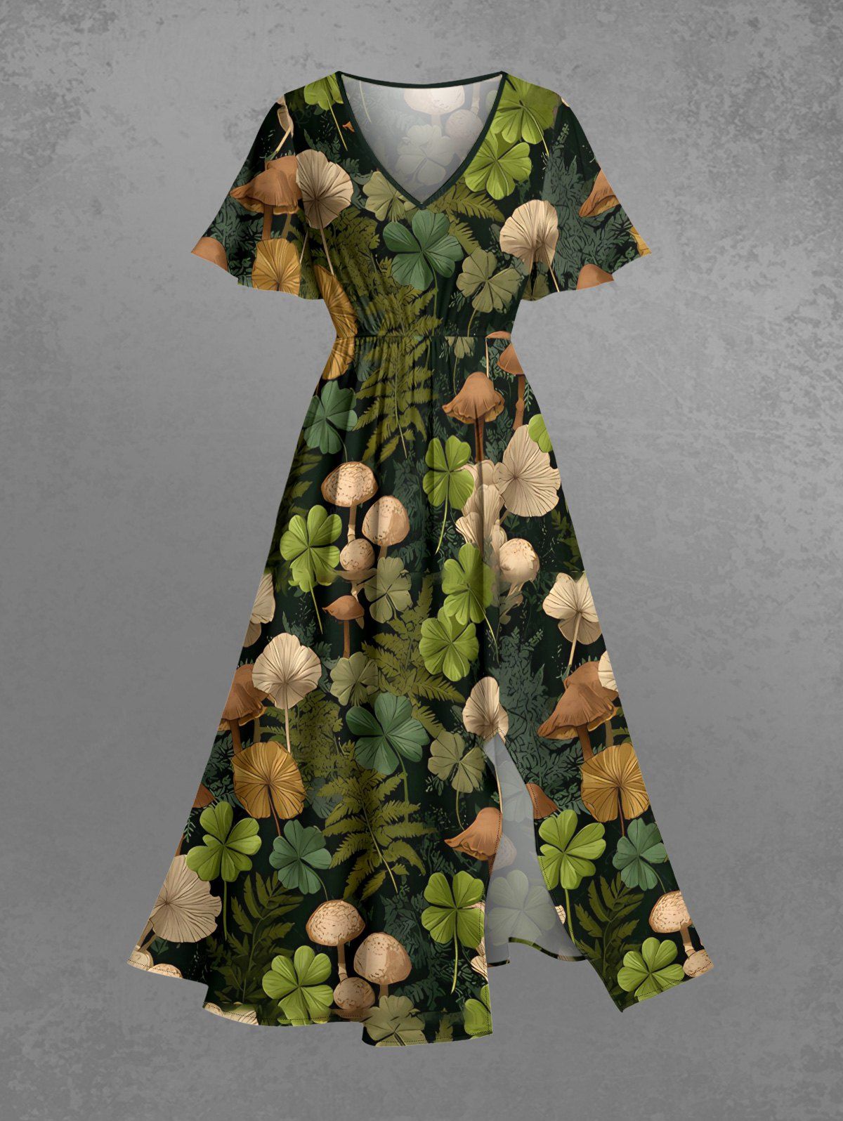 Gothic Plus Size St. Patrick's Day Mushroom Clover Leaf Print Split Midi Dress