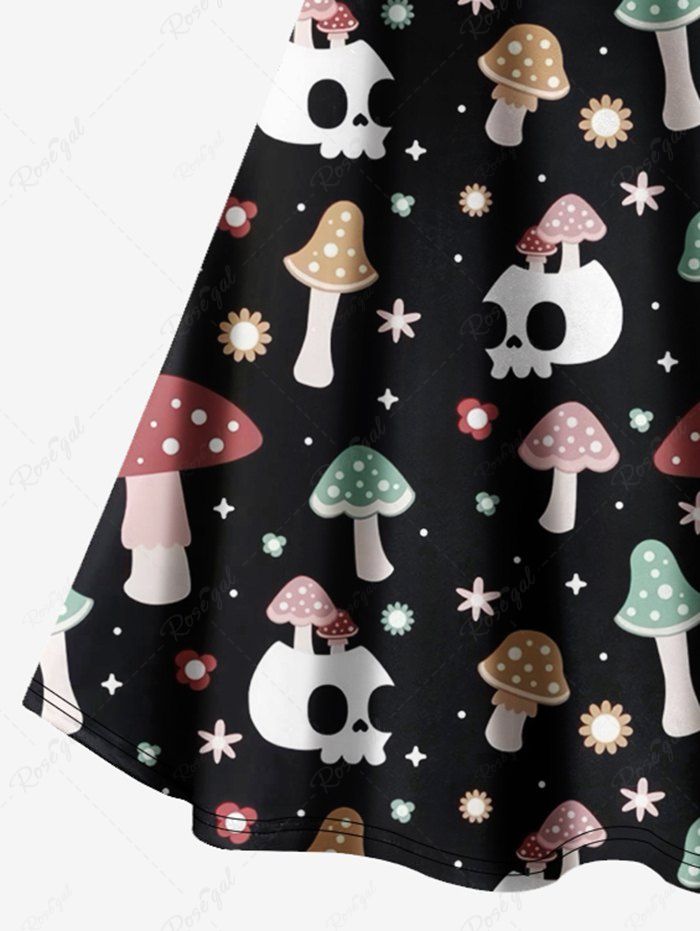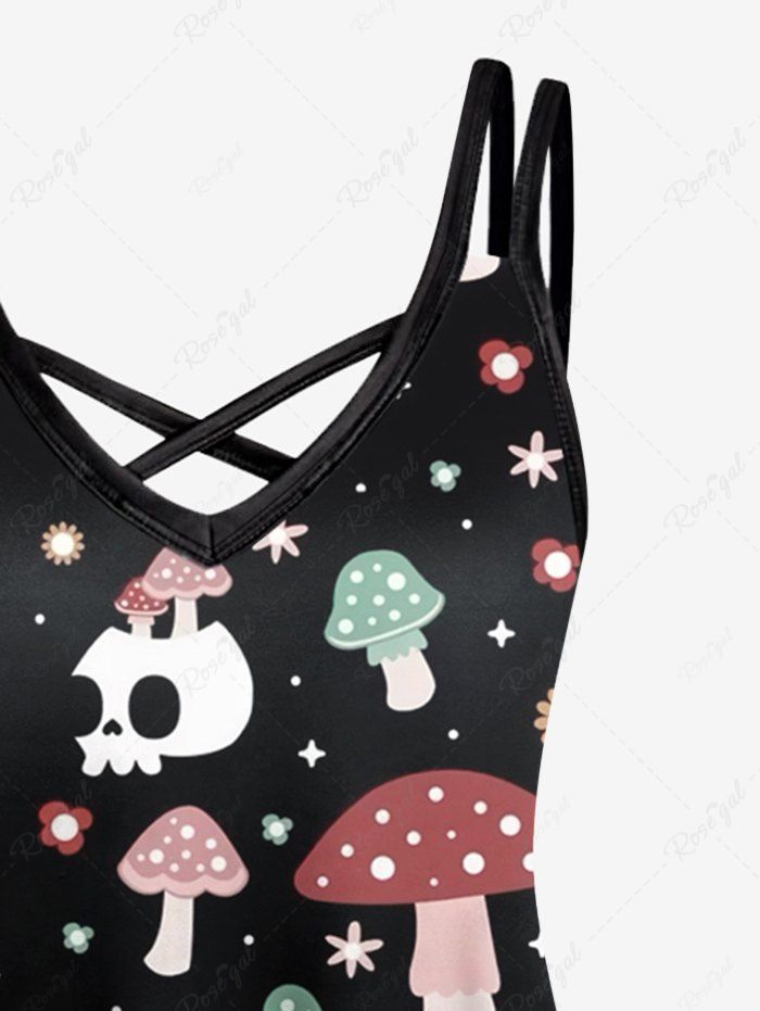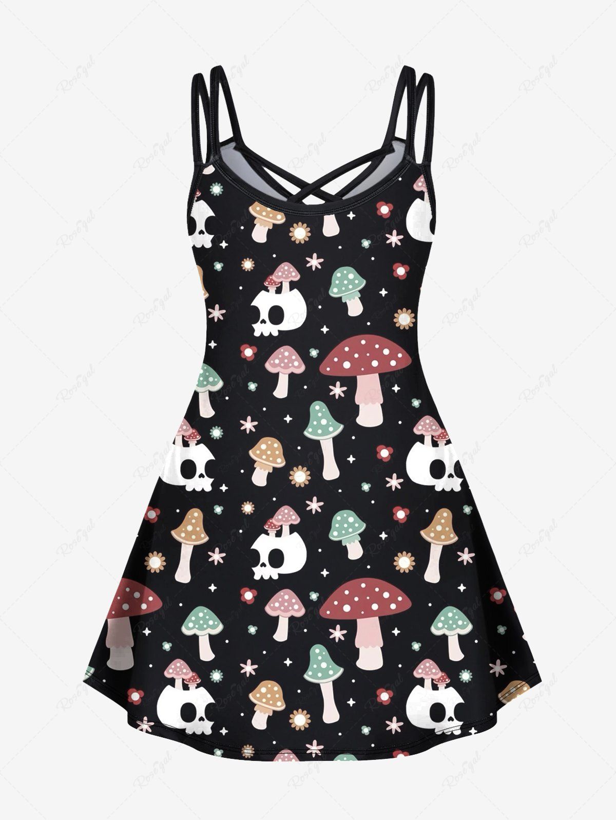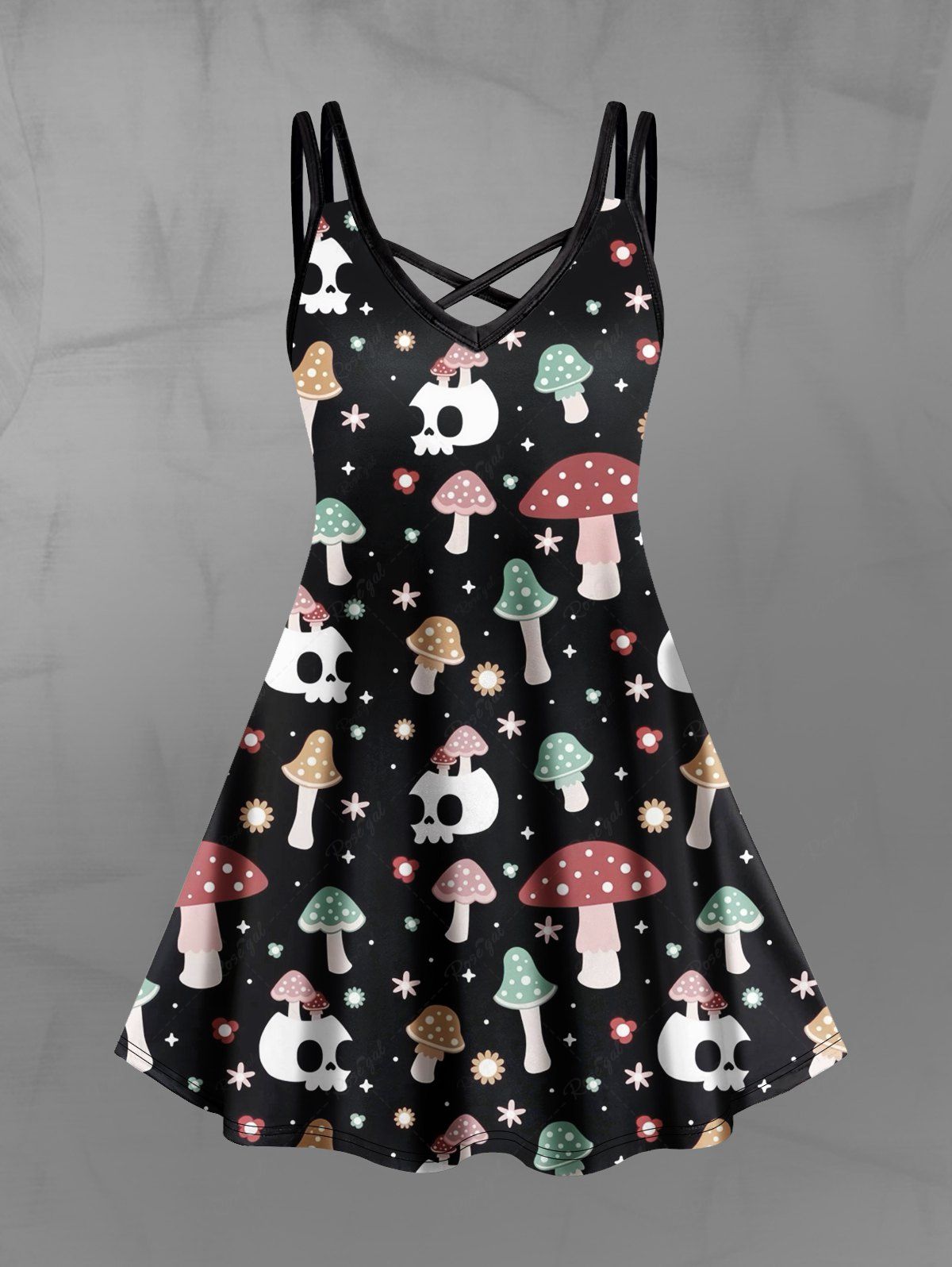 Gothic Plus Size Skulls Mushroom Star Sun Print Crisscross Cami Dress