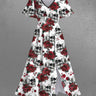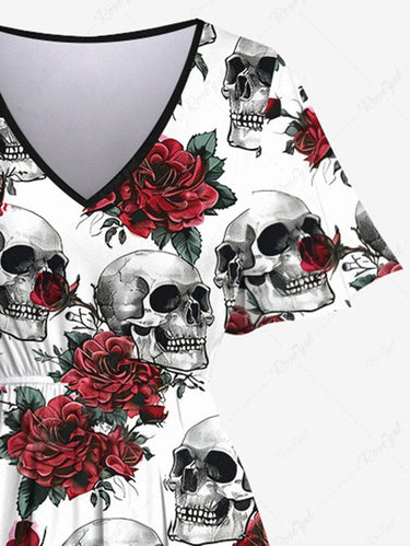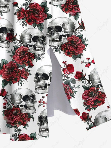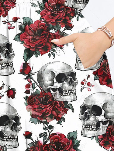 Gothic Plus Size Skulls Rose Flower Print Split Pocket A Line Dress