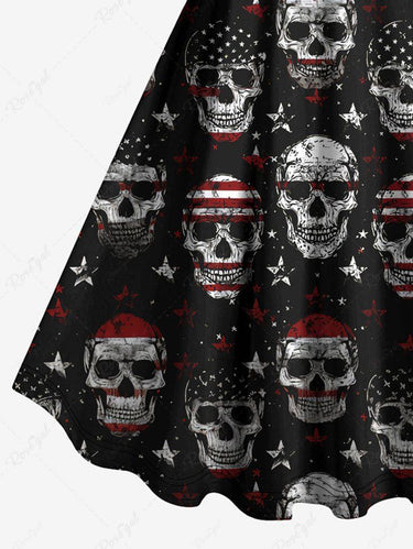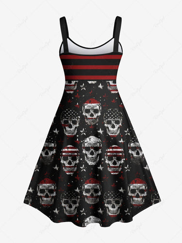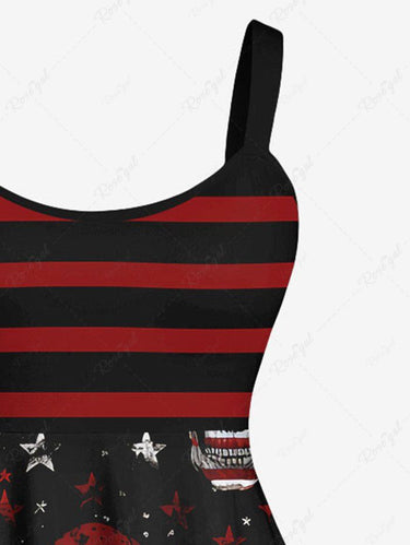 Gothic Plus Size Skulls Star American Flag Stripe Print Tank Dress