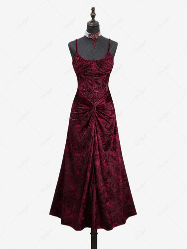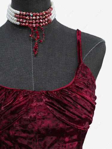 Gothic Tie Dye Print Twist Ruched Bust Velvet A Line Party Cami Dress