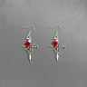 Gothic Vintage Rose Flower Leaf Cross Drop Earrings