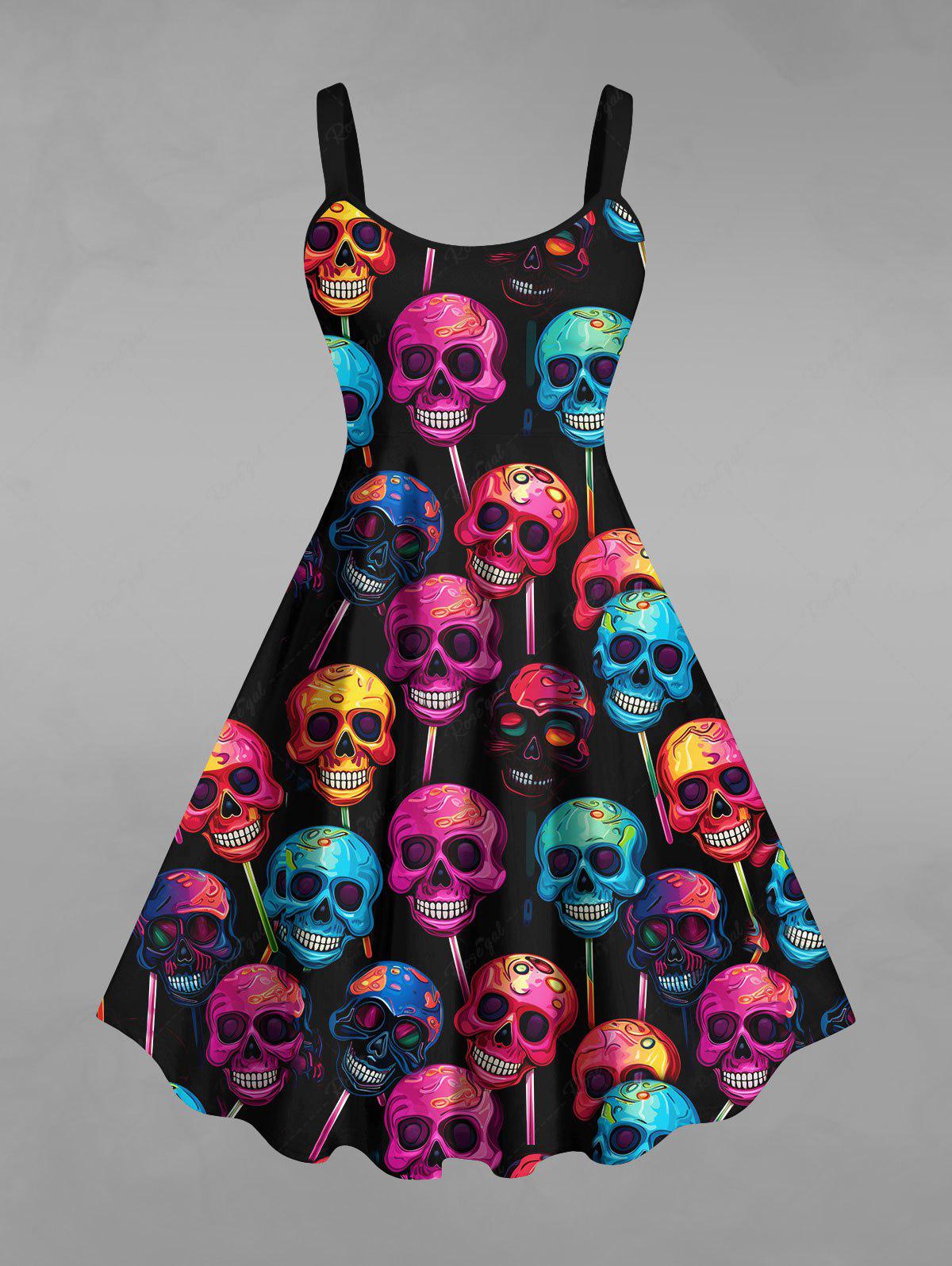 Halloween Costume Gothic Plus Size Colorful Skulls Print Dress